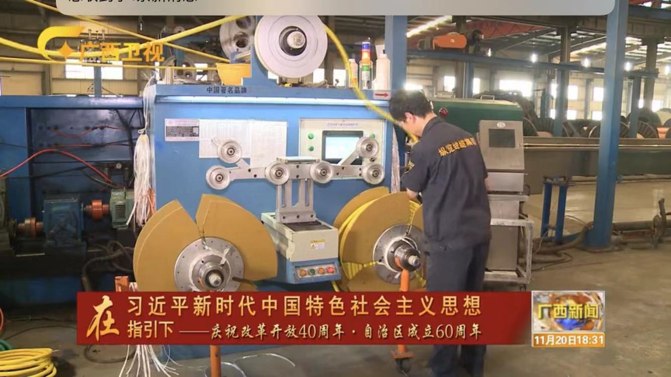 “習(xí)近平新時(shí)代中國(guó)特色社會(huì)主義思想指引下——慶祝改革開放40周年?自治區(qū)成立60周年”欄目,報(bào)道了近年來,在廣西大力實(shí)施質(zhì)量強(qiáng)桂戰(zhàn)略和商標(biāo)品牌戰(zhàn)略下,廣西涌現(xiàn)出的一大批推動(dòng)廣西經(jīng)濟(jì)發(fā)展的工業(yè)企業(yè),廣西縱覽線纜集團(tuán)有限公司(以下簡(jiǎn)稱“縱覽線纜”)