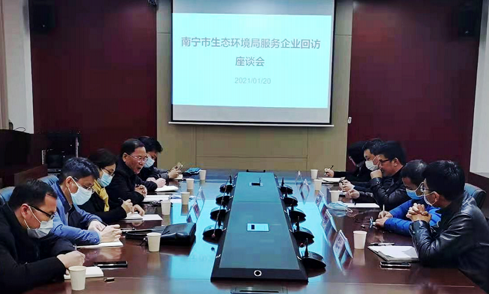 2021年1月20日,南寧市生態(tài)環(huán)境局黨組書記、局長韋好鵬,總工程師陳莉一行到南寧市經(jīng)濟技術(shù)開發(fā)區(qū)回訪縱覽集團等南寧市首批環(huán)保重點服務(wù)單位。