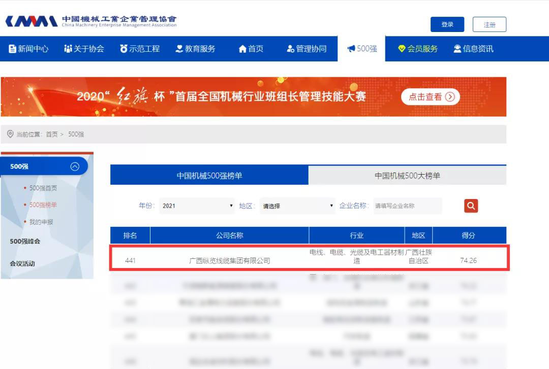 TOP. 04 縱覽線纜集團再次躋身“2021年中國機械500強企業(yè)” 日前,2021年中國機械500強榜單發(fā)布,廣西縱覽線纜集團有限公司是廣西電線電纜行業(yè)唯一上榜企業(yè)。在新冠疫情和原材料價格高漲疊加因素環(huán)境下,我集團連續(xù)上榜中國機械500強企業(yè)榜單,充分彰顯了縱覽線纜集團在科研技術(shù)、質(zhì)量管控、市場開拓、創(chuàng)新發(fā)展上的綜合實力和高質(zhì)量發(fā)展的水平,將有力促進縱覽品牌的美譽度和市場影響力。