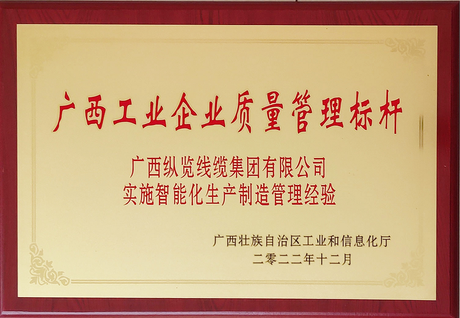 近日,廣西工信廳公布了2022年廣西工業(yè)企業(yè)質(zhì)量管理標(biāo)桿評(píng)選結(jié)果,我縱覽線纜集團(tuán)憑借“實(shí)施智能化生產(chǎn)制造管理經(jīng)驗(yàn)”成功入選,是我集團(tuán)繼2020年首次榮獲“廣西工業(yè)企業(yè)質(zhì)量管理標(biāo)桿”后,又一次被授予“廣西工業(yè)企業(yè)質(zhì)量管理標(biāo)桿”。成為廣西線纜行業(yè)目前唯一兩次榮獲“廣西工業(yè)企業(yè)質(zhì)量管理標(biāo)桿”榮譽(yù)稱(chēng)號(hào)的企業(yè)。 廣西工信廳組織評(píng)選“質(zhì)量管理標(biāo)桿”的目的是發(fā)揮優(yōu)秀企業(yè)的榜樣帶頭作用,營(yíng)造“樹(shù)標(biāo)桿、學(xué)標(biāo)桿、超標(biāo)桿”的質(zhì)量改進(jìn)氛圍,鼓勵(lì)企業(yè)導(dǎo)入先進(jìn)的管理理念、方法和措施持續(xù)提高質(zhì)量管理能力,提升產(chǎn)品、服務(wù)質(zhì)量水平。我集團(tuán)再次獲得“質(zhì)量管理標(biāo)桿”,充分證明了作為廣西智能工廠示范企業(yè)在智能化、數(shù)字化方面有效應(yīng)用對(duì)企業(yè)管理上的顯著成效。 |