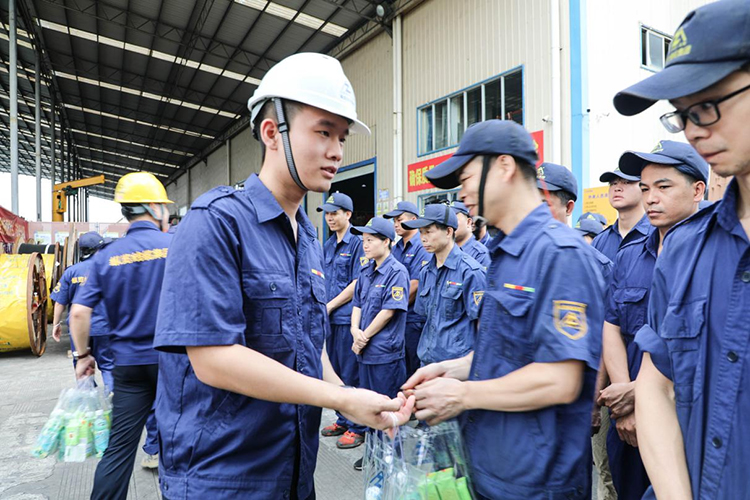 7月22日上午,廣西縱覽線纜集團(tuán)黨支部、工會(huì)帶著清涼飲料、防暑藥品走進(jìn)生產(chǎn)車間開展”擼起袖子加油干 情系職工送清涼“慰問(wèn)活動(dòng),為奮斗在烈烈夏日里的一線生產(chǎn)員工送上的一縷清涼。集團(tuán)常務(wù)副總經(jīng)理陳思源、集團(tuán)支部書記吳培軍、工會(huì)主席陳楊、工廠中心副總監(jiān)黎永豪出席慰問(wèn)活動(dòng)。