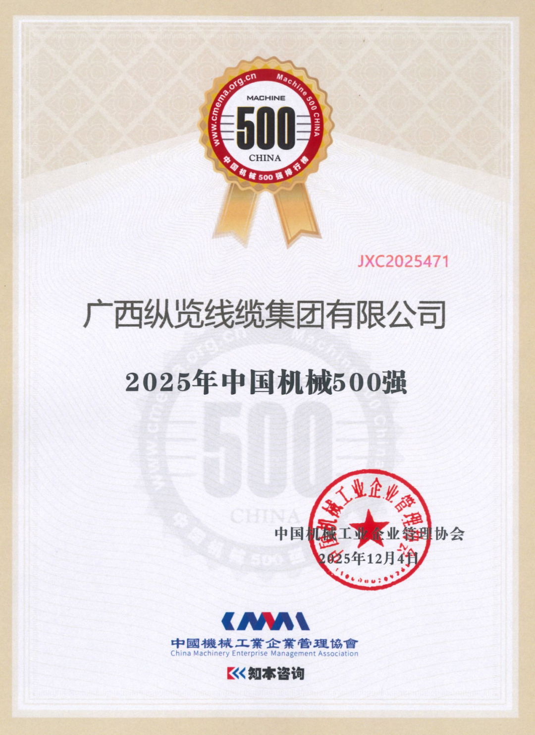 近日,中國機(jī)械工業(yè)企業(yè)管理協(xié)會(huì)正式發(fā)布“2025年中國機(jī)械500強(qiáng)”榜單。廣西縱覽線纜集團(tuán)憑借深厚積淀與強(qiáng)勁的綜合實(shí)力,連續(xù)第六年獲此殊榮,進(jìn)一步鞏固了集團(tuán)在電線電纜行業(yè)的穩(wěn)健發(fā)展態(tài)勢(shì)與核心競(jìng)爭(zhēng)力。 作為長期深耕電線電纜領(lǐng)域的標(biāo)桿企業(yè),縱覽線纜集團(tuán)始終專注于電線電纜的研發(fā)、生產(chǎn)、銷售與服務(wù),堅(jiān)定不移走“服務(wù)電網(wǎng),走進(jìn)萬家”的品牌發(fā)展道路。公司積極踐行科技創(chuàng)新、高效節(jié)約、環(huán)保低碳的高質(zhì)量發(fā)展理念。面對(duì)全球制造業(yè)智能化、綠色化變革趨勢(shì),集團(tuán)已構(gòu)建起“技術(shù)研發(fā)—智能制造—綠色生產(chǎn)”三位一體的發(fā)展體系,持續(xù)投入專項(xiàng)經(jīng)費(fèi)用于數(shù)字化車間改造及環(huán)保工藝升級(jí),推動(dòng)產(chǎn)品核心指標(biāo)持續(xù)領(lǐng)跑行業(yè)。 踔厲奮發(fā)擔(dān)使命,賡續(xù)前行穩(wěn)致遠(yuǎn)??v覽線纜集團(tuán)將繼續(xù)堅(jiān)守“做好產(chǎn)品回報(bào)客戶,做好企業(yè)回報(bào)社會(huì),就是對(duì)黨和國家最大的忠誠”的企業(yè)使命,持續(xù)增強(qiáng)核心競(jìng)爭(zhēng)力,為構(gòu)建新發(fā)展格局、推進(jìn)質(zhì)量強(qiáng)國建設(shè)注入持久動(dòng)力。 |