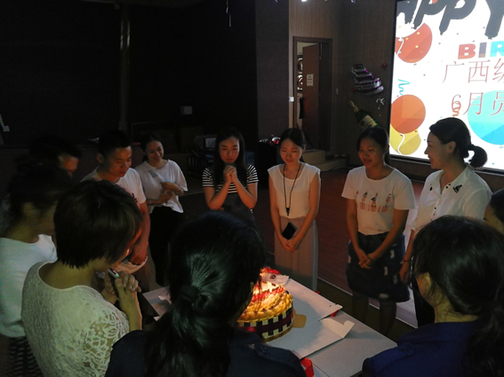 17點,來自不同崗位的壽星們陸續(xù)到場,生日會在主持人一聲熱情響亮的問好聲中拉開了序幕,接著為壽星們送上最真摯、最有愛的祝福,音樂響起:“祝你生日快樂,祝你生日快樂……”,壽星們共同點燃蛋糕上的蠟燭,共同許下美好的愿望,燭光下洋溢著笑容的臉龐,展現(xiàn)了縱覽一家親的溫馨氛圍。