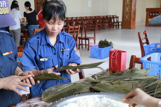 (一)“粽”覽巧手——包粽子大賽 下午三點(diǎn),在人事行政經(jīng)理雷斐的一番精彩講話后,包粽比賽正式開始!由公司各部門組成包粽小組紛紛大顯身手,拿出看家絕活,女同事們手法嫻熟把一個(gè)個(gè)粽子包的非常精美,財(cái)務(wù)主管李懷新更是秀了一把好手藝,他包的粽子有棱有角,端端正正,三兩下子一個(gè)飽滿美觀的粽子就完成了!正是鐵漢也有柔情一面!良芯小組的男同事也不甘示弱,邊看邊學(xué),認(rèn)認(rèn)真真地完成了包粽任務(wù)。最后,財(cái)務(wù)部采購部小組憑借實(shí)力獲得了本次包粽比賽的冠軍,董事長助理兼財(cái)務(wù)中心總監(jiān)莫麗軍為冠軍隊(duì)伍頒發(fā)獎(jiǎng)品。