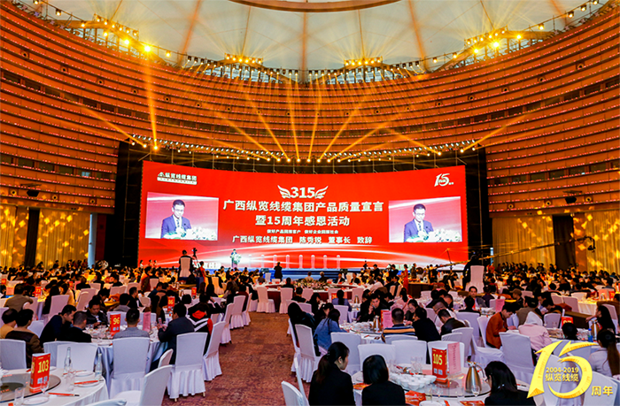 2019年3月13日下午15:30分,廣西縱覽線纜集團3?15產(chǎn)品質(zhì)量宣言暨十五周年感恩盛典在南寧國際會展中心朱槿花廳隆重舉行。廣西壯族自治區(qū)市場監(jiān)督管理局、南寧市市場監(jiān)督管理局、南寧市政法委等領(lǐng)導(dǎo)出席了本次活動,各協(xié)會、銀行、高等院校、廣大經(jīng)銷商、五金店及十余家區(qū)內(nèi)外媒體朋友們共同見證了本次活動。 廣西縱覽線纜集團聯(lián)手廣西廣播電視臺新聞頻道、廣西建筑裝飾協(xié)會曝光了電線行業(yè)低價、低質(zhì)的市場亂象,發(fā)起了共同關(guān)注用電安全的倡議,向社會做出了“做負責任的人,做最好的線纜,抵制偽劣電線電纜,保證為客戶提供優(yōu)質(zhì)電線電纜,如經(jīng)抽檢不合格,由生產(chǎn)企業(yè)負責雙倍賠償”的公開承諾。 廣西縱覽線纜集團宣布正式進入民用領(lǐng)域,讓老百姓也終于能用上專供南方電網(wǎng)的放心品牌了。 作為廣西線纜行業(yè)的龍頭標桿企業(yè),縱覽線纜集團發(fā)展不忘回饋社會,為弘揚正義,鼓勵見義勇為精神,縱覽線纜集團承諾:企業(yè)每銷售1公里電線電纜產(chǎn)品,向見義勇為基金會捐獻1元錢。 縱覽線纜集團十五年的發(fā)展,離不開社會各界朋友們的關(guān)心、信任和支持。為感恩朋友、感恩客戶,縱覽公司為各位嘉賓安排了精彩的文藝表演,臺灣歌星卓依婷的精彩獻唱將活動推向高潮。 廣西縱覽線纜集團3?15產(chǎn)品質(zhì)量宣言暨十五周年感恩盛典圓滿成功。廣西廣播電視臺新聞頻道、廣西新聞網(wǎng)、南寧晚報、網(wǎng)易新聞等十余家媒體對本次活動進行了全程錄制和報道。 |