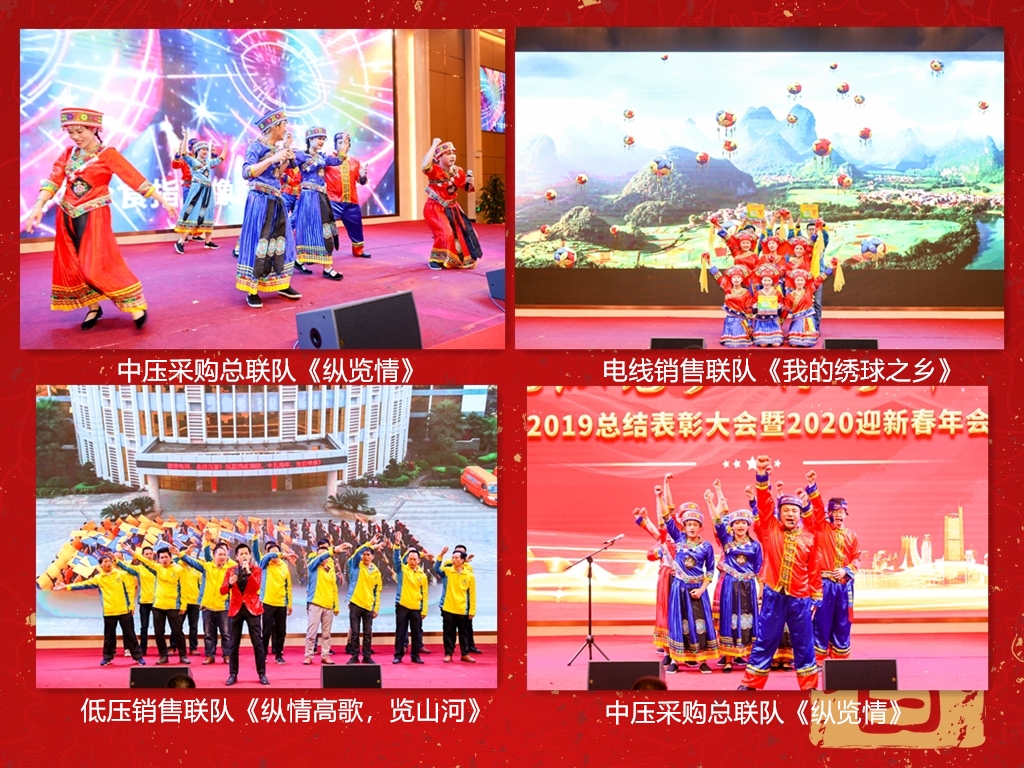 2020年1月13日,縱覽線纜集團2019年總結表彰大會暨2020年迎新春年會在華南城維也納金色大廳隆重舉行。集團董事長陳秀銳先生、總裁唐崇健先生、監(jiān)事會主席林曉敏女士、副董事長徐洪虎先生、常務副總裁彭斌先生、總工程師劉小祥先生、董事長助理兼財務總監(jiān)陳楊先生、董事長助理兼銷售副總監(jiān)韋艷秋女士、總裁助理兼人力行政總監(jiān)張彩菊女士及工廠總監(jiān)楊興恒先生出席了本次年會,集團領導與縱覽的各位嘉賓們、縱覽伙伴們歡聚一堂,共襄盛會! 走過往昔,奮斗的汗水剛剛拭去,回首征途,勝利的笑容不斷蔓延。時間,如白駒過隙,2019,縱覽人還來不及擦凈拼博的汗水,便迎來了鮮活嶄新的2020。新的一年,新的起點。縱覽人將不忘初心,聯(lián)合廣大負責任的經(jīng)銷商、裝飾公司、水電工師傅們,讓專供南方電網(wǎng)的縱覽產(chǎn)品走遍八桂大地,走進億萬家庭。 14:30分,2019年總結表彰大會準時開始,首先對過去一年先進的個人和團隊進行表彰。每一位優(yōu)秀的縱覽人,他們不怕苦、不怕累,就怕任務完不成;他們勤勤懇懇、默默付出,有著強烈的奉獻精神;他們時刻以公司利益為先,舍小家為大家,全身心地投入工作。 表彰大會過后,一支熱情洋溢的開場舞正式拉開了方隊競演的序幕。各個方隊精彩的亮相,一呼百應、鏗鏘有力的氣勢看得讓人熱血沸騰,展現(xiàn)了縱覽團隊的氣勢、創(chuàng)意和不掉隊、不服輸?shù)膱F隊精神。 開場舞《我相信》 各方隊進行口號展示