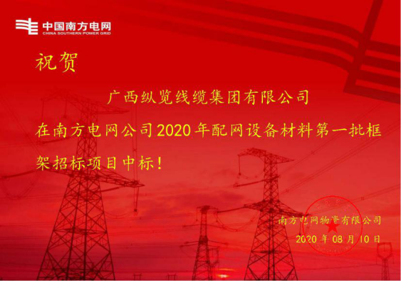 近日,中國南方電網(wǎng)公司公布了2020年配網(wǎng)設備材料第一批框架項目招標結果,縱覽線纜集團取得優(yōu)異的成績,合計中標金額約達4億元!這充分證明了南方電網(wǎng)對縱覽線纜集團綜合實力的認可,也是縱覽線纜集團十六年全心服務南方電網(wǎng),堅持“做最好的線纜”的成果體現(xiàn)! 縱覽集團是國家CNAS認可的檢測中心,省級認定的企業(yè)技術中心和自治區(qū)級研發(fā)中心;擁有RXX改性聚氯乙烯絕緣改性聚氯乙烯護套軟電纜、0.6/1kV環(huán)保型無鹵低煙阻燃電力電纜、額定電壓0.6/1kV交聯(lián)聚乙烯絕緣室內(nèi)外安裝電線、新型中壓耐火電力電纜、鋁合金中低壓電力電纜、智能防火家裝線系列產(chǎn)品等20多項新產(chǎn)品。研發(fā)出的高導電耐熱鋁合金導線已列入2018年南寧市科學研究與技術開發(fā)計劃重點研發(fā)項目。 縱覽集團是廣西最大的電纜生產(chǎn)基地和中高壓導線生產(chǎn)基地。獲得了“中國電線電纜行業(yè)最具競爭力百強企業(yè)”、“全國工業(yè)品牌培育示范企業(yè)”、“2019年中國機械500強”、“廣西電線電纜行業(yè)龍頭企業(yè)”等殊榮。 做好產(chǎn)品回報客戶,做好企業(yè)回報社會!縱覽人不忘初心,堅持做負責任的人,做最好的線纜! |