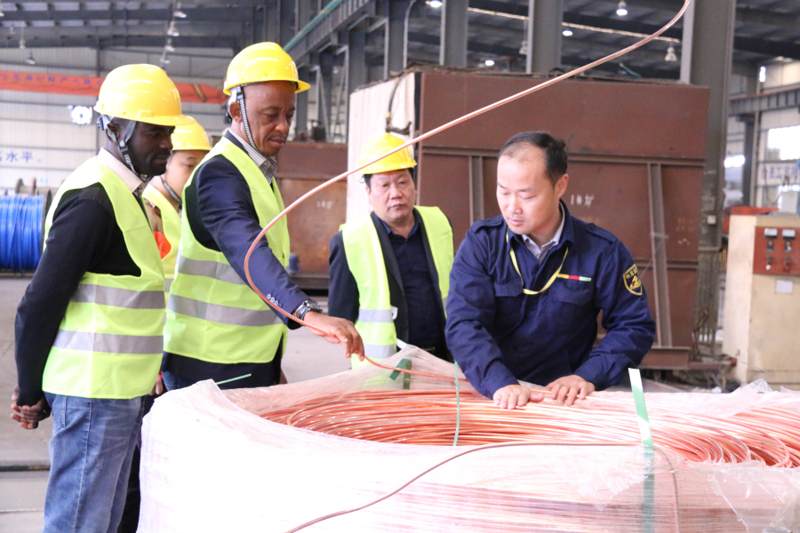 2016年11月26日,非洲剛果金國家電網(wǎng)總經(jīng)理丹尼斯一行不遠(yuǎn)萬里蒞臨廣西縱覽線纜集團(tuán)有限公司參觀考察。 在劉總工程師等領(lǐng)導(dǎo)的陪同下,宏銳公司銷售總監(jiān)魯玉成和非洲剛果金國家電網(wǎng)總經(jīng)理丹尼斯參觀了我公司的生產(chǎn)車間。劉總工程師詳細(xì)介紹了我公司生產(chǎn)的線纜產(chǎn)品特性與亮點(diǎn)。丹尼斯在切身體會了我公司的生產(chǎn)情況和產(chǎn)品之后,對公司的技術(shù)實(shí)力及規(guī)模表示贊賞,并且詳細(xì)的詢問了線纜的生產(chǎn)技術(shù)和銷售情況。他表示,此次訪問不僅有助于剛果金學(xué)習(xí)借鑒中國的經(jīng)驗(yàn),還將有力促進(jìn)縱覽與剛果金的友好交流合作。最后,丹尼斯與縱覽線纜集團(tuán)的員工進(jìn)行了親切合影,還表達(dá)了并進(jìn)一步建立合作關(guān)系的意愿,希望能與縱覽集團(tuán)進(jìn)行深入的交流與合作。 |