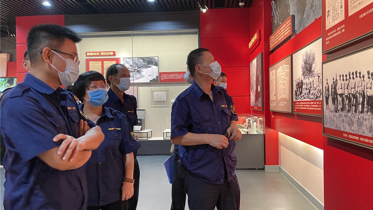 當(dāng)天中午,大家在董事長在帶領(lǐng)下來到在大坪渡口遺址參觀學(xué)習(xí)。大坪渡口為紅軍長征突破湘江第一渡,1934年11月27日,中央紅軍右翼一軍團(tuán)主力從此渡江。27日凌晨,在夜色的掩護(hù)下,紅一師二團(tuán)、紅二師主力隨軍團(tuán)部趁桂軍南撤之際,從大坪渡口渡過湘江,成為湘江戰(zhàn)役中最早渡過湘江的部隊,而大坪渡口也成了中央紅軍最先突破的湘江渡口。隨后,紅一軍團(tuán)控制了從屏山到界首30公里的所有湘江渡口,為黨中央及紅軍主力渡過湘江創(chuàng)造了有利條件。 在結(jié)束大坪渡口的參觀學(xué)習(xí)后,大家來到全州兩河鎮(zhèn)湘桂紅軍古道,親身體驗了紅軍長征走過的崎嶇山路,親身感受紅軍長征的堅辛。當(dāng)天35度高溫烈日,每個同志的衣服都已全部被汗浸透,大家穿著濕透的衣服在崎嶇小路上前行,沒有人喊苦喊累也沒放任任何一個人掉隊,傳承紅軍的堅韌與樂觀。