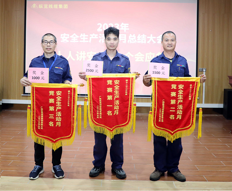 安全生產(chǎn)活動(dòng)月期間,各部門根據(jù)“安全生產(chǎn)月”活動(dòng)方案統(tǒng)一部署,全面落實(shí)以“人人講安全,個(gè)個(gè)會(huì)應(yīng)急”為主題,開展了系列安全生產(chǎn)宣傳活動(dòng),各部門在車間、辦公區(qū)域懸掛安全生產(chǎn)標(biāo)語、橫幅,營造了良好的宣傳范圍。此外,我集團(tuán)廣泛開展安全生產(chǎn)知識競賽活動(dòng),組織進(jìn)行了有針對性的應(yīng)急救援演練,通過安全教育和培訓(xùn),強(qiáng)化一線作業(yè)人員安全基本知識和安全技能;全面開展安全隱患排查治理活動(dòng),確保整改落實(shí)到位。各項(xiàng)活動(dòng)取得了明顯成效。 6月17日,我集團(tuán)開展了安全生產(chǎn)活動(dòng)月總結(jié)大會(huì)暨安全知識競賽活動(dòng),標(biāo)志著縱覽線纜集團(tuán)2023年安全生產(chǎn)活動(dòng)月圓滿結(jié)束。安全領(lǐng)導(dǎo)小組組長、董事長陳秀銳出席會(huì)議并講話;安全領(lǐng)導(dǎo)小組副組長劉小祥、吳培軍、黎永豪,安環(huán)辦、各中心領(lǐng)導(dǎo)、部門負(fù)責(zé)人參加會(huì)議。 陳秀銳董事長對公司安全生產(chǎn)工作取得的成績給予肯定,解析了安全工作重點(diǎn)和當(dāng)前存在的問題。他表示,公司十分重視安全生產(chǎn),每年如期舉行安全生產(chǎn)活動(dòng)月就是為了讓大家重視安全生產(chǎn)。他強(qiáng)調(diào),安全生產(chǎn)是大愛,管理團(tuán)隊(duì)要高度重視安全生產(chǎn)工作,接受員工監(jiān)督,自我反省、自我檢查,要敢管,解決根源性問題,讓安全生產(chǎn)深入到每一個(gè)人,讓全體員工達(dá)成安全生產(chǎn)共識,重視安全生產(chǎn);各層級領(lǐng)導(dǎo)要自我反思、自我剖析、自我批評,加強(qiáng)領(lǐng)導(dǎo)力提升、水平提升,安全生產(chǎn)不能停于表面、流于形式,要付諸行動(dòng),安全生產(chǎn)是責(zé)任、是規(guī)范、是規(guī)劃。作為實(shí)操者,要積極踐行“做負(fù)責(zé)任的人”文化價(jià)值觀,為自己負(fù)責(zé)、為家人負(fù)責(zé)、為公司負(fù)責(zé),希望安全生產(chǎn)不單單在形式上轟轟烈烈,更要在行為上取得更大的成就,我們要規(guī)范開展每一項(xiàng)工作,共同鑄造平安縱覽,安全縱覽。 在會(huì)議開始前,進(jìn)行了一場精彩紛呈的安全知識競賽,五支參賽隊(duì)伍經(jīng)過五輪激烈角逐,最后結(jié)合安全隱患排查、安全征文、技能競賽綜合成績,生產(chǎn)隊(duì)獲安全生產(chǎn)活動(dòng)月競賽一等獎(jiǎng);電力隊(duì)獲安全生產(chǎn)活動(dòng)月競賽二等獎(jiǎng);財(cái)質(zhì)隊(duì)獲安全生產(chǎn)活動(dòng)月競賽三等獎(jiǎng)。與會(huì)領(lǐng)導(dǎo)向安全生產(chǎn)活動(dòng)月獲獎(jiǎng)隊(duì)伍頒發(fā)了錦旗。 |