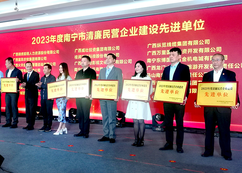 1月19日,南寧市工商聯(lián)舉行2024年南寧市工商界迎春座談會(huì)。自治區(qū)工商聯(lián)副主席蔡家東,南寧市黨委常委、統(tǒng)戰(zhàn)部部長(zhǎng)、副市長(zhǎng)張自英出席。 會(huì)上表彰了2023年在萬(wàn)企興萬(wàn)村、清廉民企建設(shè)、人民調(diào)解等工作中成績(jī)顯著、做出突出貢獻(xiàn)的商會(huì)、企業(yè)和個(gè)人。我集團(tuán)在清廉民企建設(shè)方面又受到表彰。我集團(tuán)高度重視清廉民企建設(shè)工作,注重發(fā)揮集團(tuán)黨組織的政治引領(lǐng)和組織功能作用,結(jié)合企業(yè)經(jīng)營(yíng)實(shí)際創(chuàng)造性的開展清廉民企建設(shè)工作,取得積極成效,為公司高質(zhì)量發(fā)展發(fā)揮了重要賦能作用。 集團(tuán)繼2022年被授予“南寧市清廉民企建設(shè)標(biāo)桿企業(yè)”榮譽(yù)后,如今再次被評(píng)為“2023年度南寧市清廉民企建設(shè)先進(jìn)單位”。 |