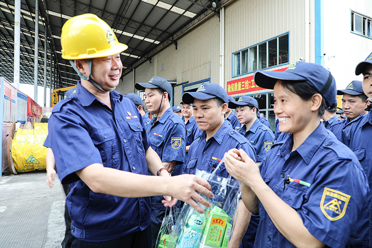7月22日上午,廣西縱覽線纜集團(tuán)黨支部、工會(huì)帶著清涼飲料、防暑藥品走進(jìn)生產(chǎn)車間開展”擼起袖子加油干 情系職工送清涼“慰問(wèn)活動(dòng),為奮斗在烈烈夏日里的一線生產(chǎn)員工送上的一縷清涼。集團(tuán)常務(wù)副總經(jīng)理陳思源、集團(tuán)支部書記吳培軍、工會(huì)主席陳楊、工廠中心副總監(jiān)黎永豪出席慰問(wèn)活動(dòng)。