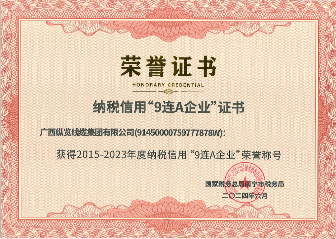 近日,經(jīng)國家稅務(wù)總局南寧稅務(wù)局評定,廣西縱覽線纜集團(tuán)榮獲“2015-2023年度納稅信用“9連A”企業(yè)榮譽稱號”,至今已連續(xù)九年獲得此項榮譽,這不僅是對集團(tuán)長期以來堅持誠信經(jīng)營、積極履行社會責(zé)任的高度肯定,更是稅務(wù)機關(guān)對我們依法納稅、誠信納稅的高度贊譽。 以誠信為基,以創(chuàng)新為翼。展望未來,縱覽線纜集團(tuán)將不忘初心,持續(xù)深化對客戶和社會的服務(wù),積極創(chuàng)新,響應(yīng)國家稅收政策號召,不斷發(fā)揮納稅信用A級企業(yè)的引領(lǐng)作用,繼續(xù)書寫誠信經(jīng)營的輝煌篇章 |