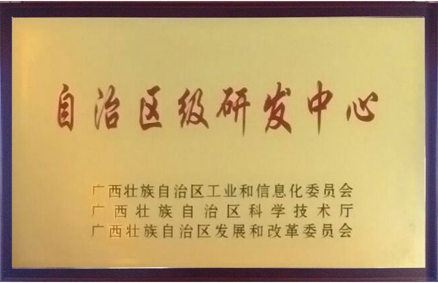 廣西壯族自治區(qū)工業(yè)和信息化委員會、廣西壯族自治區(qū)科學(xué)技術(shù)廳、廣西壯族自治區(qū)發(fā)展和改革委員會頒發(fā)的自治區(qū)級研發(fā)中心